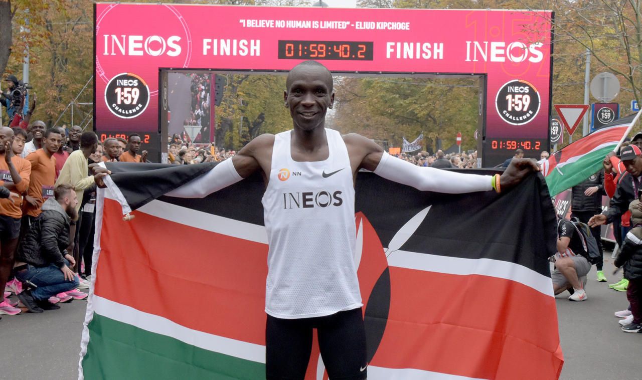 Eliud Kipchoge feiert seinen Marathon-Rekordlauf auf der Prater Hauptallee