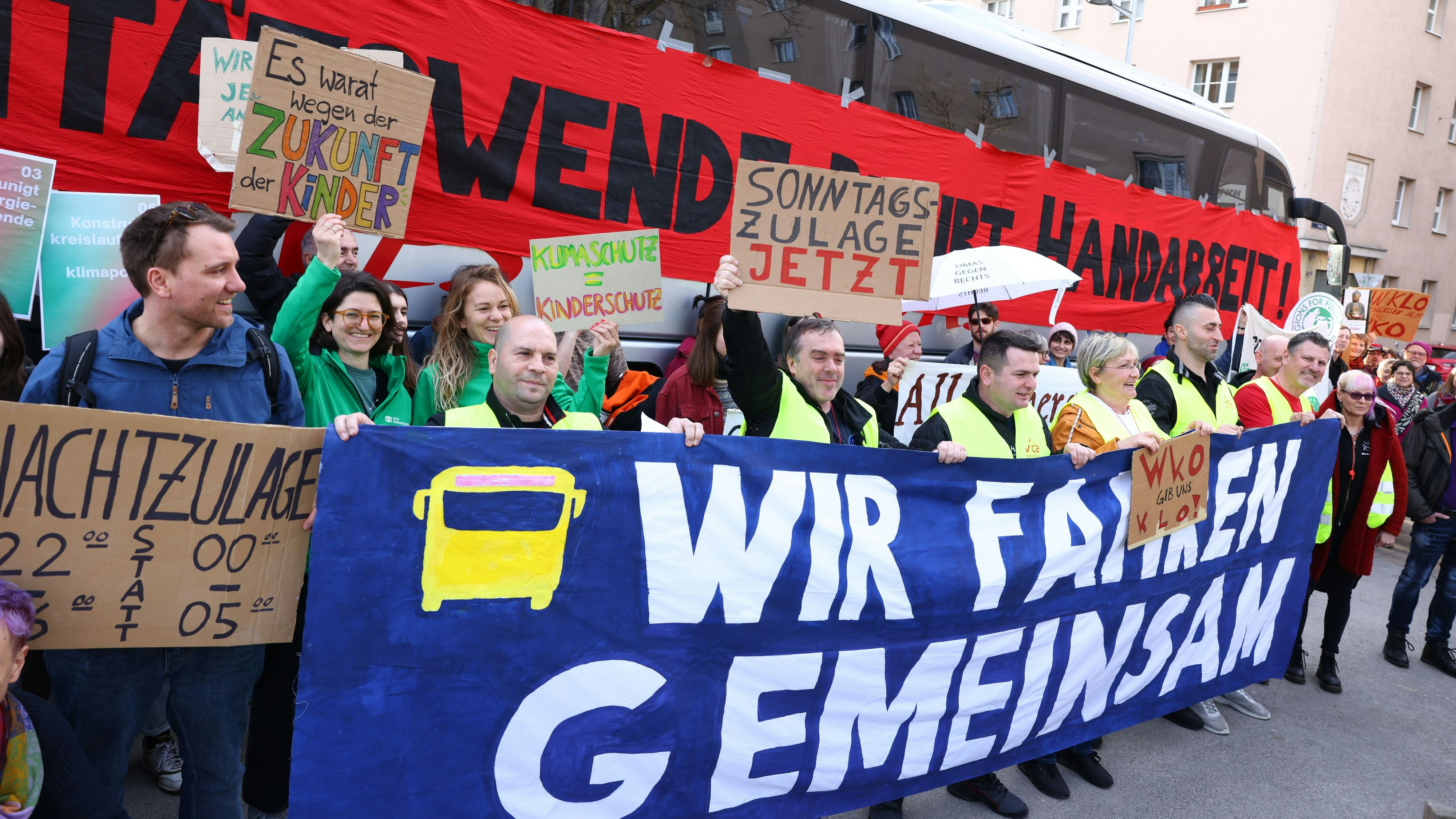 Fridays for Future und die Gewerkschaft vida demonstrieren unter dem Titel "Wir Fahren Gemeinsam" für bessere Arbeitsbedingungen.