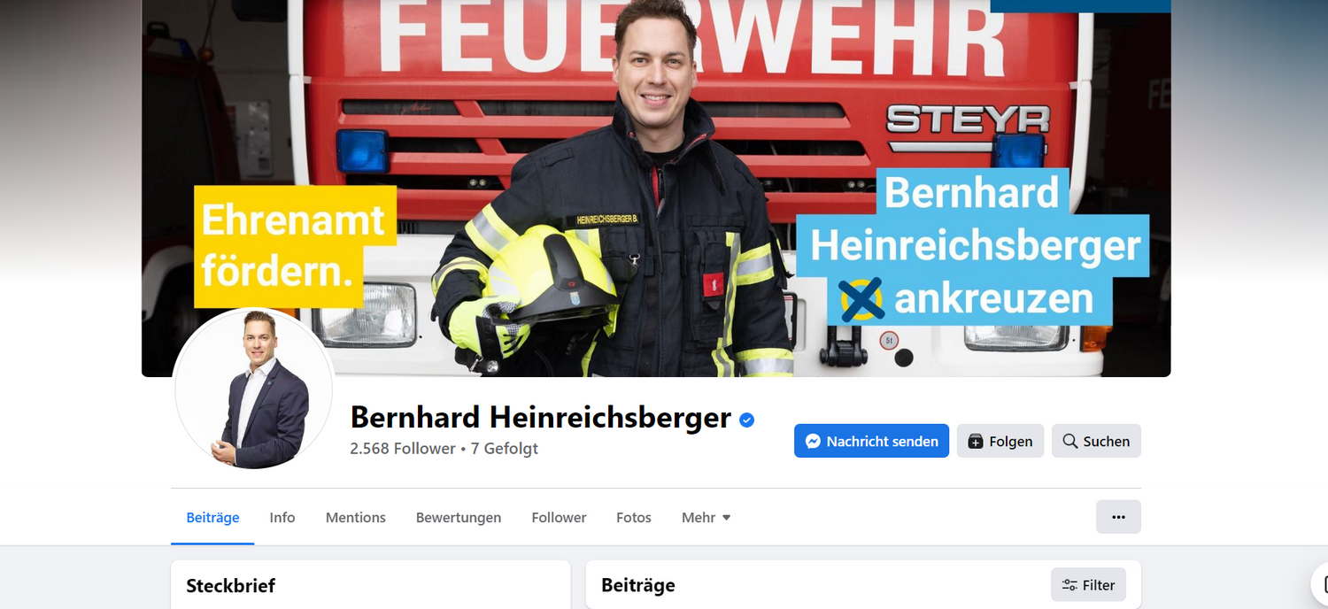 JVP-Obmann Bernhard Heinreichsberger ist seit 23 Jahren bei der Feuerwehr aktiv, zeigt das auch im Wahlkampf. Das schmeckt nicht allen.