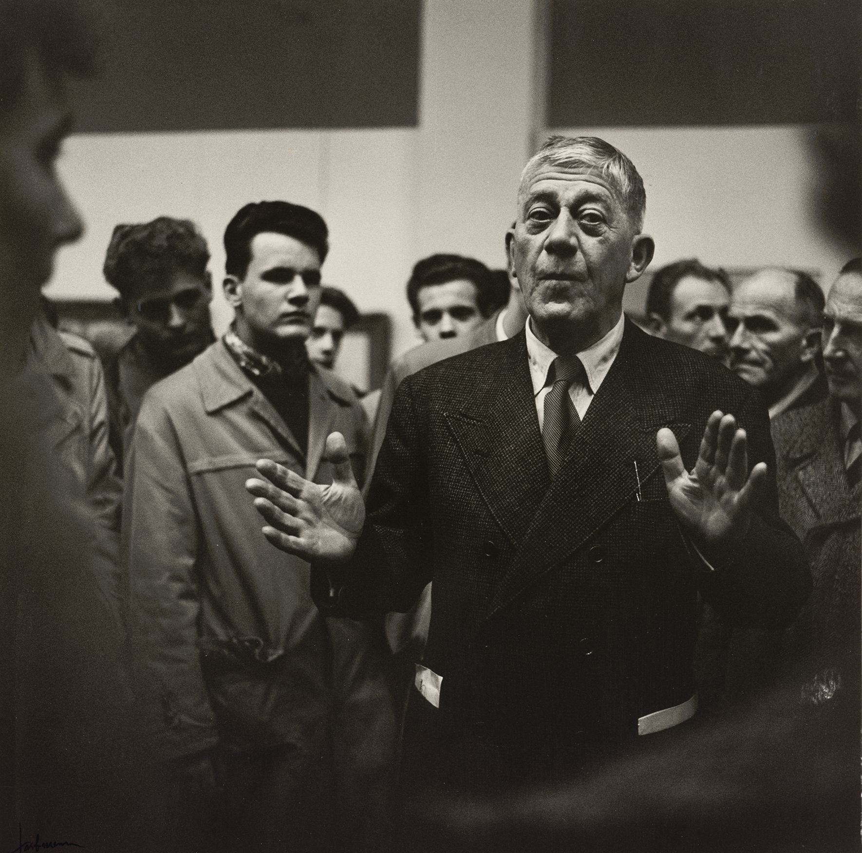 Oskar Kokoschka bei seiner Ausstellungseröffnung in der Secession