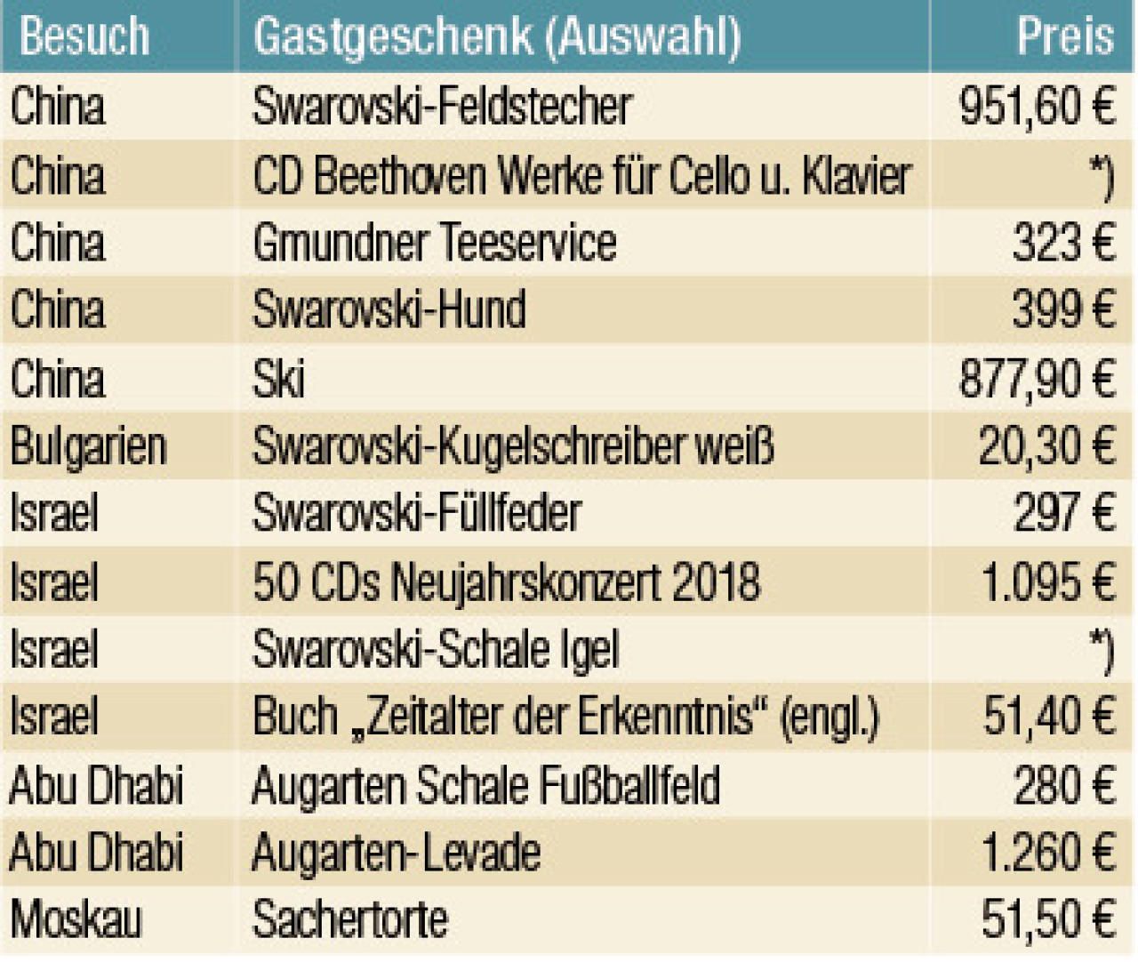 Das kosteten die Staatsbesuchs Geschenke der letzten Monate.