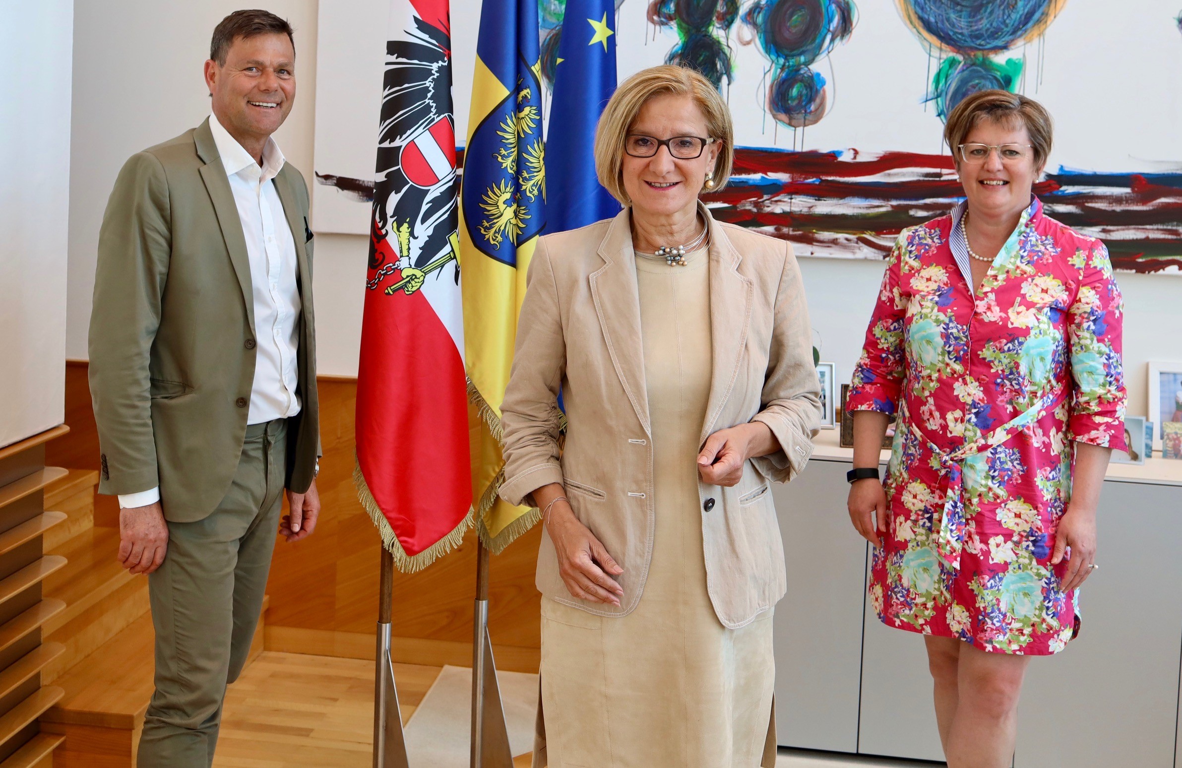 Landeshauptfrau Johanna Mikl-Leitner mit Christine Lechner und Walter Kirchler.