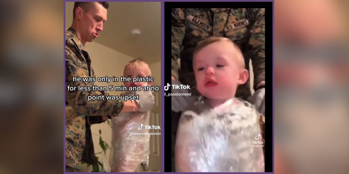 Der kleine Gunner (Bild) wurde vom Hals abwärts in Frischhaltefolie eingewickelt. "Zum Spaß", wie die Mutter betont.