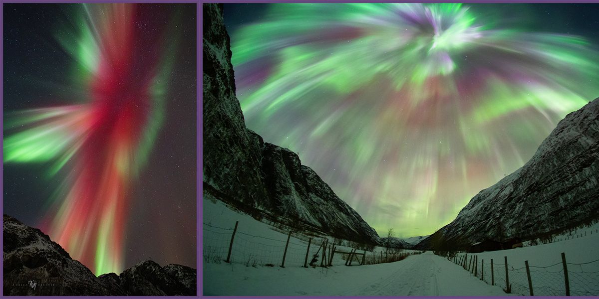 Ein Naturschauspiel, wie man es nicht oft zu sehen bekommt: Rote grüne und violette Polarlichter.