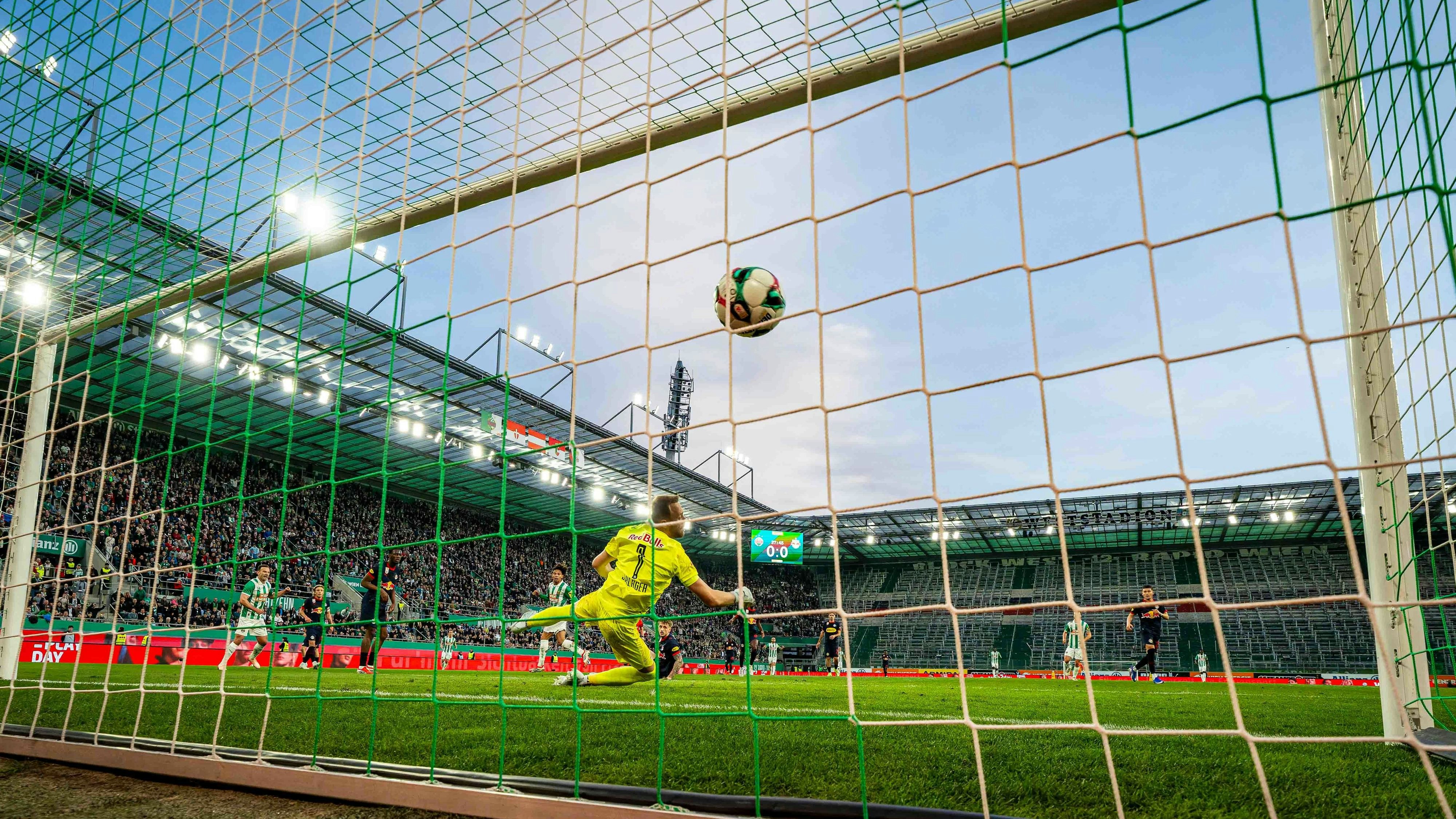 Rapid gegen Salzburg, der Block West (zu sehen im Hintergrund) musste leer bleiben.