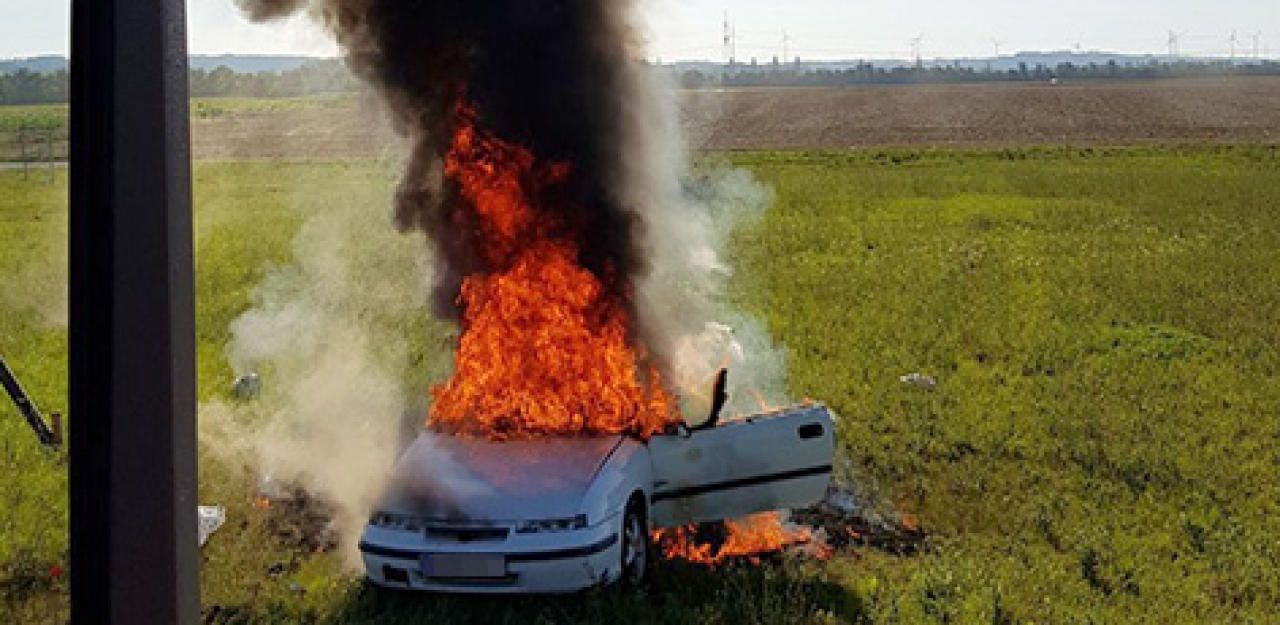 Das Auto des 19-Jährigen brannte lichterloh. Die Feuerwehr musste es löschen. Gerettet wurde der Bursch von einem Lkw-Fahrer.