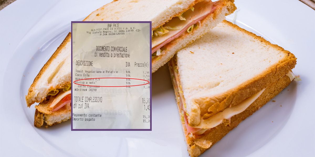 "Diviso da meta": Für das Teilen des Toasts verrechnete das Lokal eine "Halbierungsgebühr" in Höhe von 2 Euro.