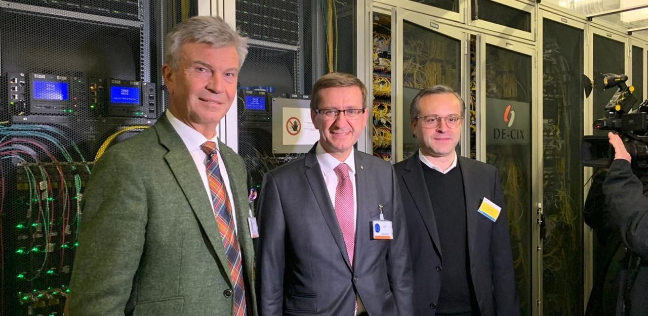 Energie-AG-Generaldirektor Werner Steinecker (v.li.), Landesrat Markus Achleitner und Thomas King, Technischer Direktor von DE-CIX (Internet-Knoten in Frankfurt)