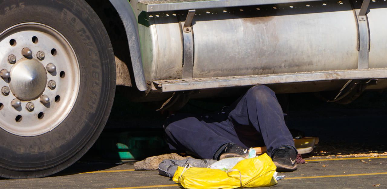 Symbolbild eines Mannes, der an einem Lkw arbeitet.