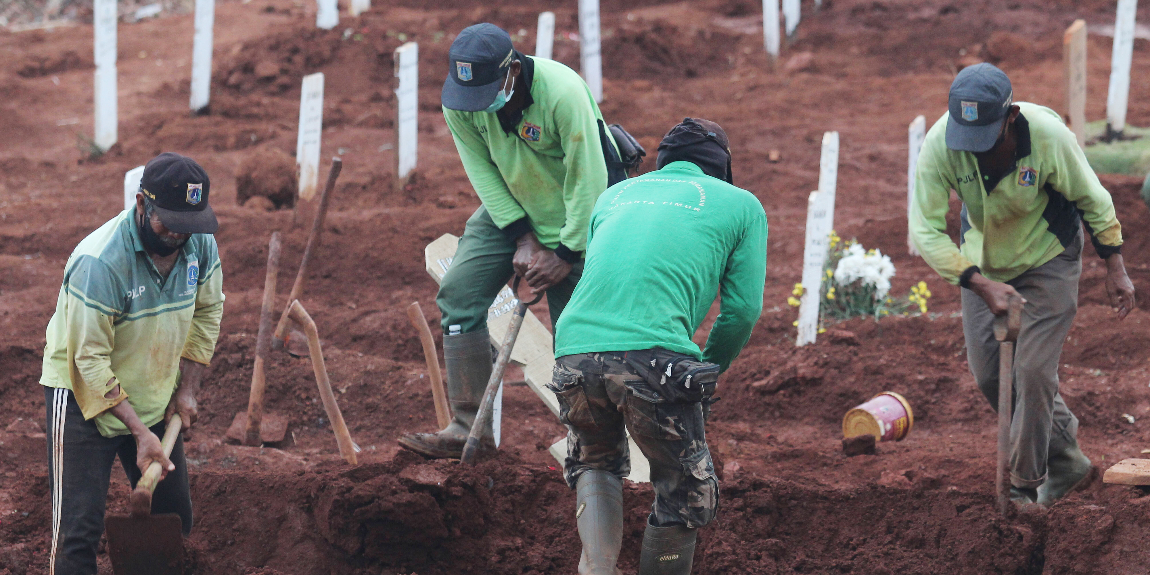 In Gräbern wie diesen werden in Indonesien Corona-Opfer bestattet