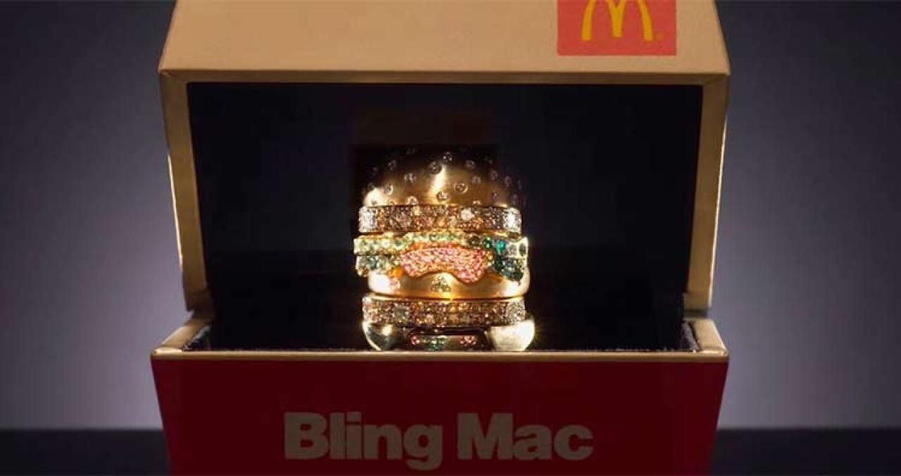 Dieser Ring hat es in sich. Mit Edelsteinen und aus 24-Karat-Gold hergestellt, kostet er 10.000 Euro. Doch es gibt ihn nicht zu kaufen, sondern zu gewinnen! (Foto: McDonalds)