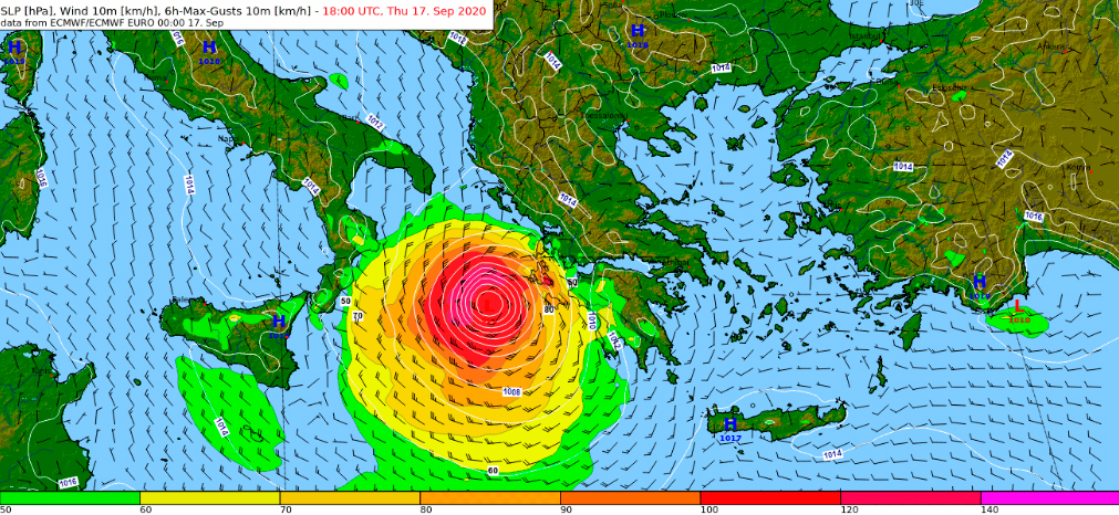 Vorhersage der Böen in den kommenden Stunden/Tage