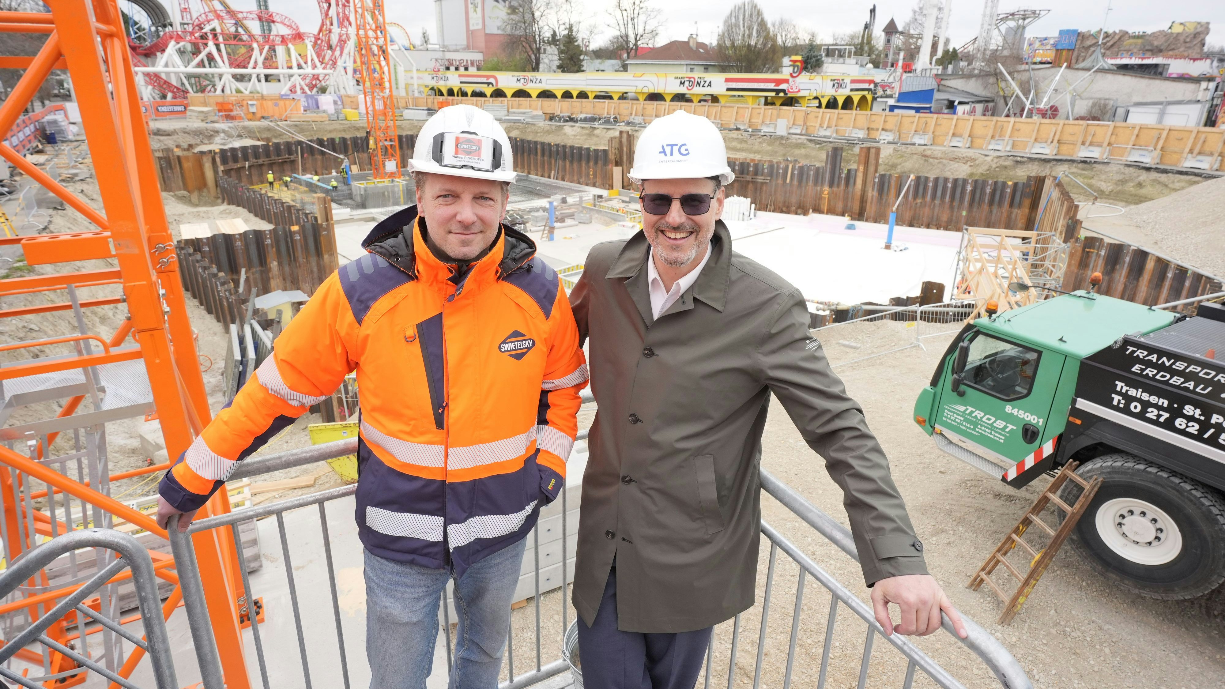 Projektverantwortlicher Matthias Prichzi (re.) auf der Baustelle im Prater.