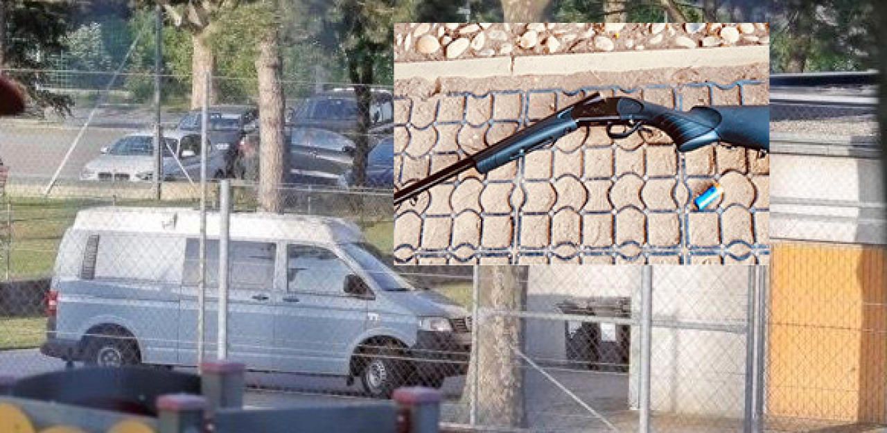 Der Tatort Stunden nach der Tat und die Waffe des Schützen.