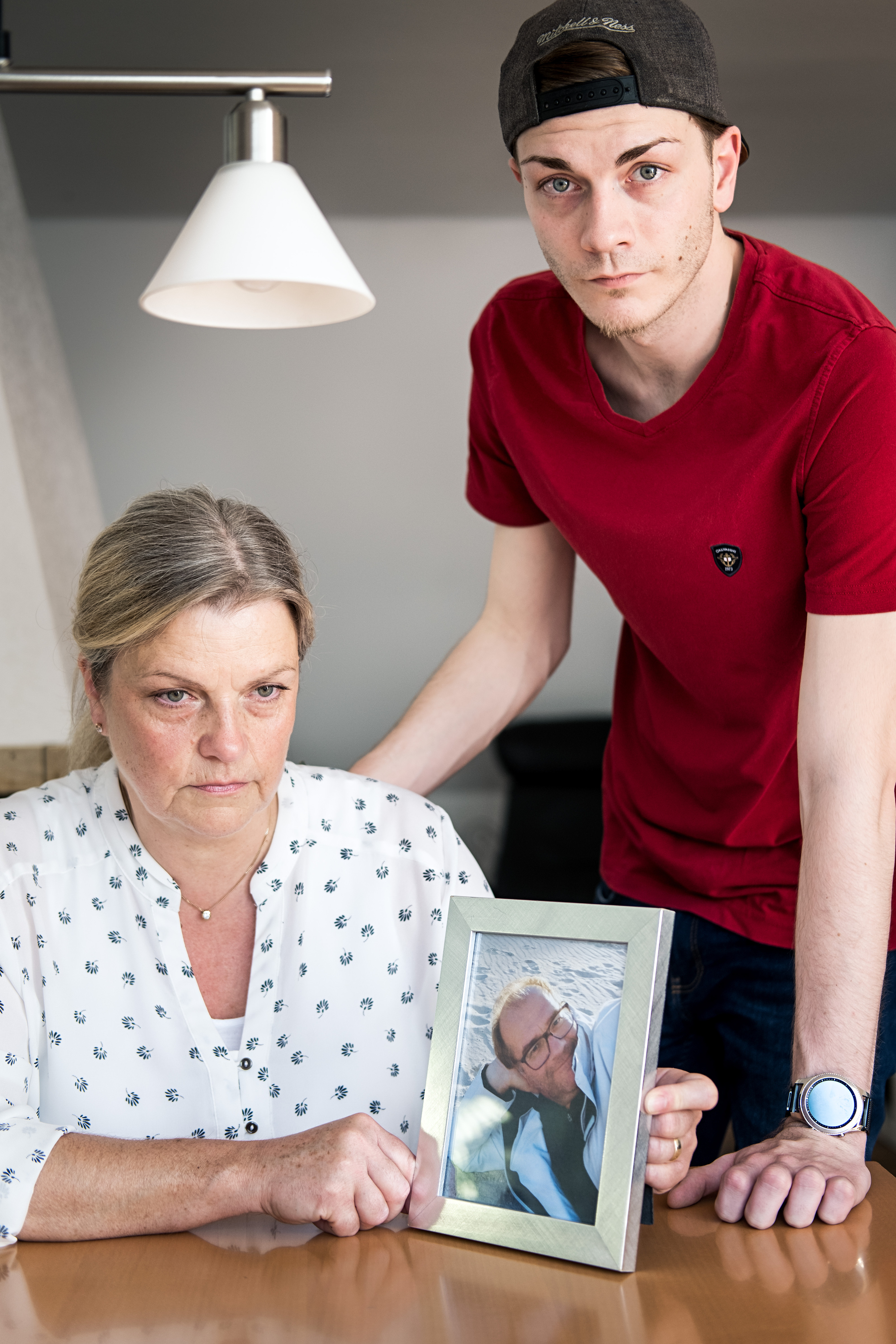 Doris Henkel (l.) mit einem Foto ihres Mannes, hinten steht Sohn Leonard.