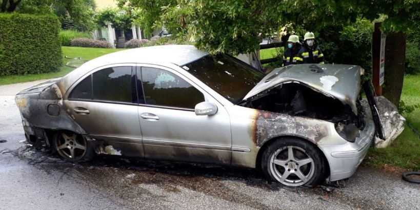 Wahrscheinlich aufgrund eines technischen Defektes im Motorbereich fing der Mercedes Feuer.