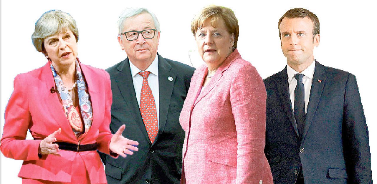 Theresa May, Jean-Claude Juncker, Angela Merkel, Emmanuel Macron