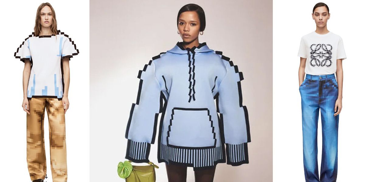 Das T-Shirt und die Hose (li.) kommen auf 1.400 bzw. 1.900 Euro. Der blaue Hoodie (Mitte) kostet 1.900 Euro, das gemusterte T-Shirt und Jeans auf je 450 bzw. 880 Euro (re.).