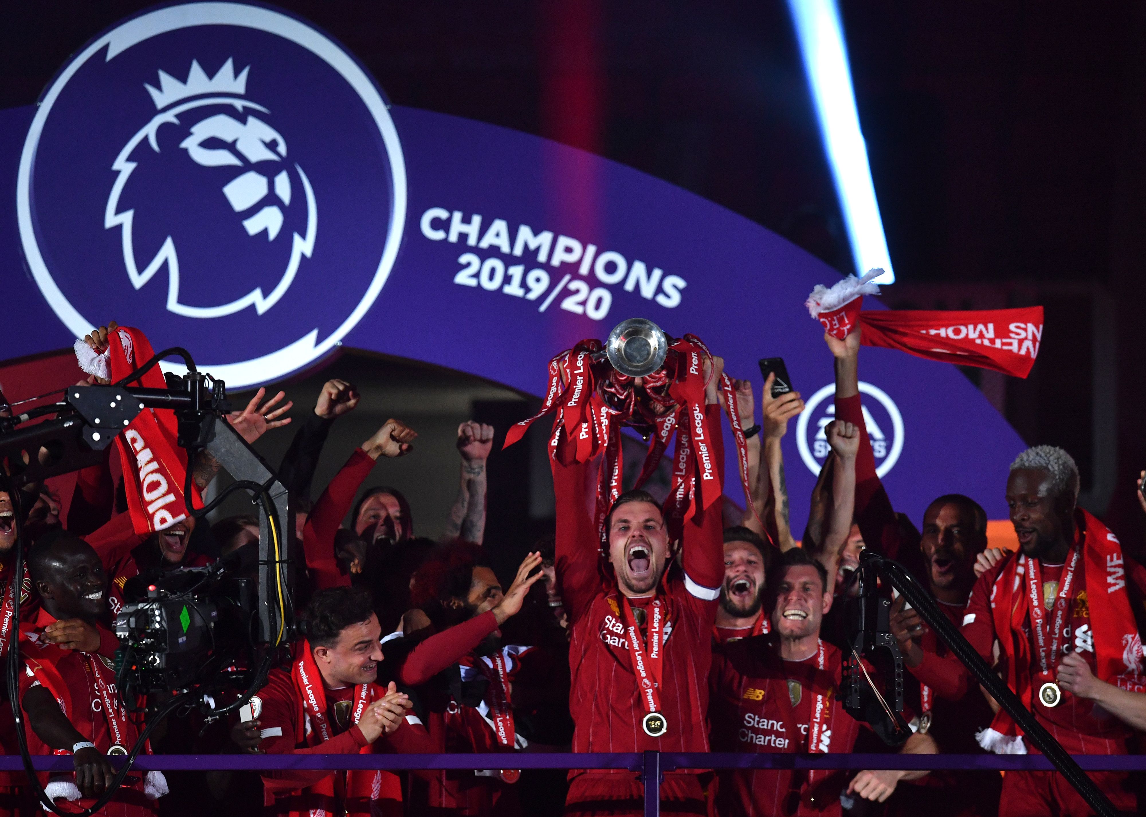 Die Liverpool-Spieler feiern den Meistertitel.