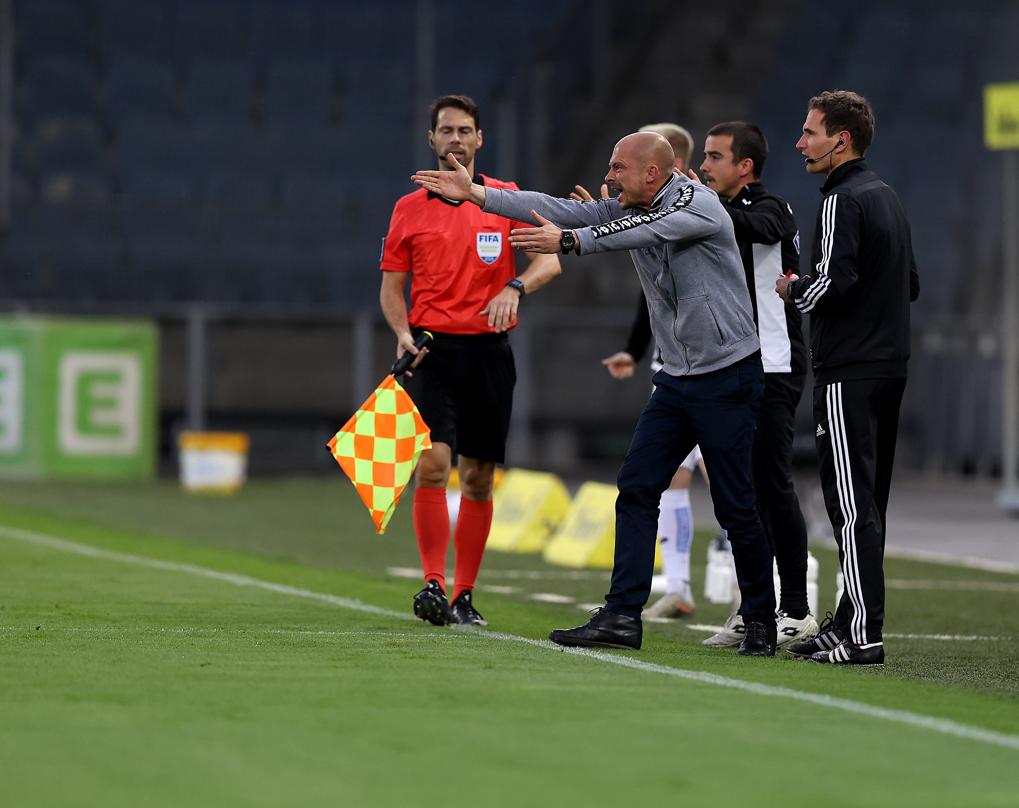 Sturm-Coach Nestor El Maestro fliegt mit Rot vom Platz.