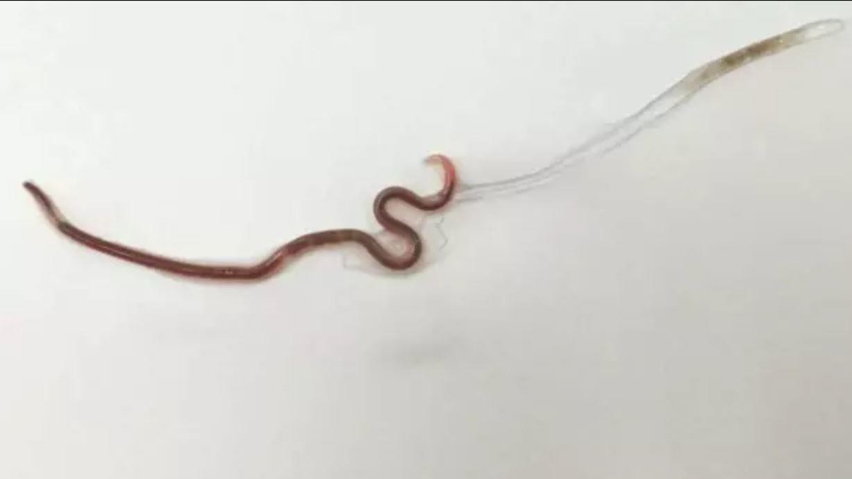 Dieser 3,5 Zentimeter lange Wurm befand sich im Rachen einer Frau.