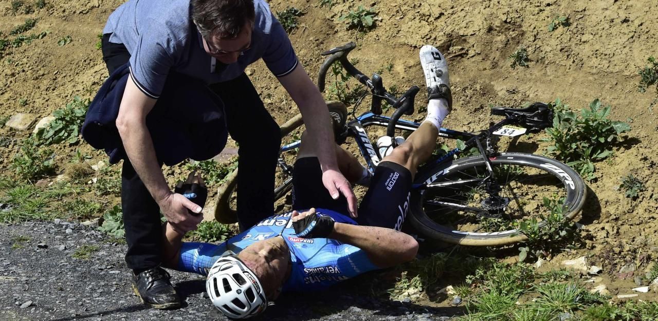 Sorge um Michael Goolaerts: Unmittelbar nach seinem schweren Sturz war der Belgier noch am Leben.