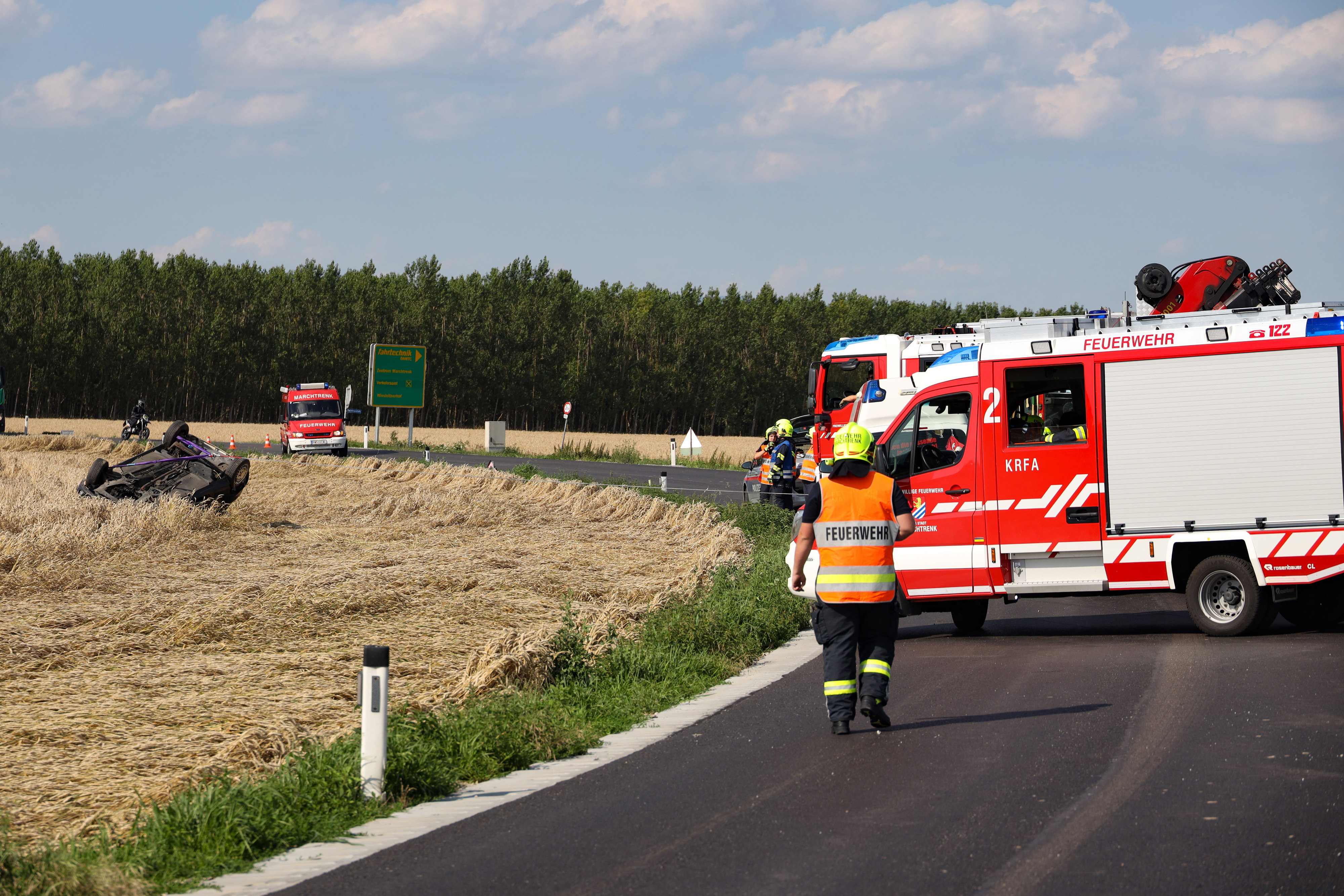 Das Auto blieb auf dem Dach in einem Feld liegen, sein Lenker konnte sich selbst befreien.