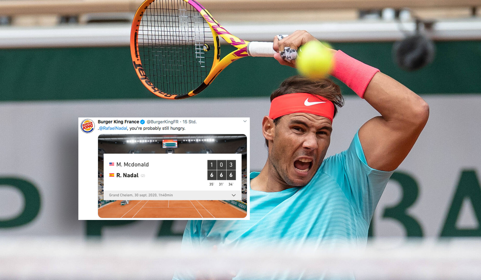 Rafael Nadal lieferte Burger King eine Steilvorlage.