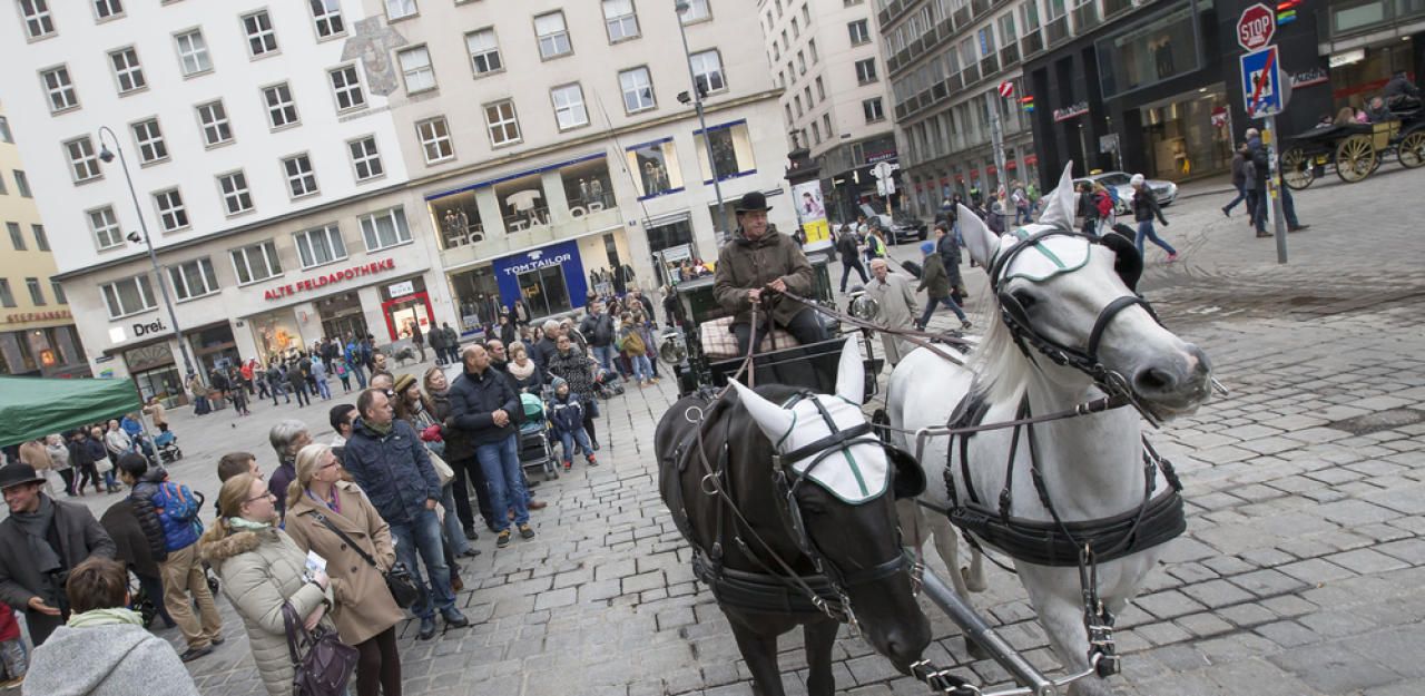 Fiaker vor dem Stephansdom im ersten Bezirk in der Wiener City.