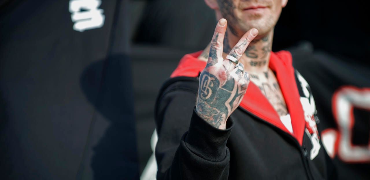 (Symbolbild) Ein deutscher Neonazi bei einem Aufmarsch der rechtsextremen NPD