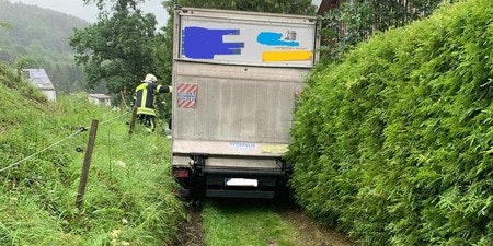 Das Fahrzeug blieb zwischen einer Gartenmauer und einer Böschung stecken