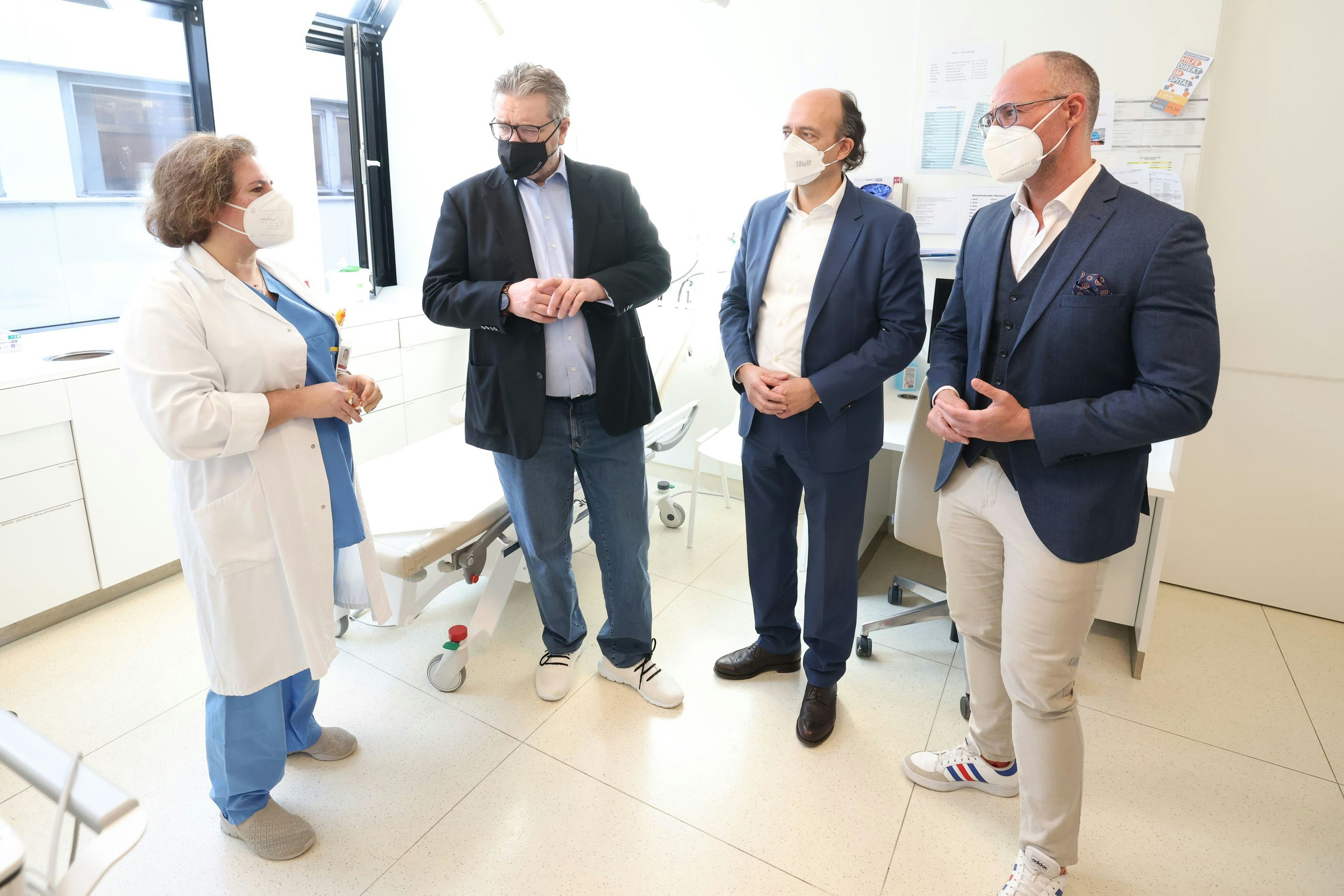 Die Erstversorgungsambulanz in der Klinik Landstraße soll Spitalsambulanzen entlasten. Stadtrat Hacker (2.v.li.) machte sich selbst ein Bild davon.