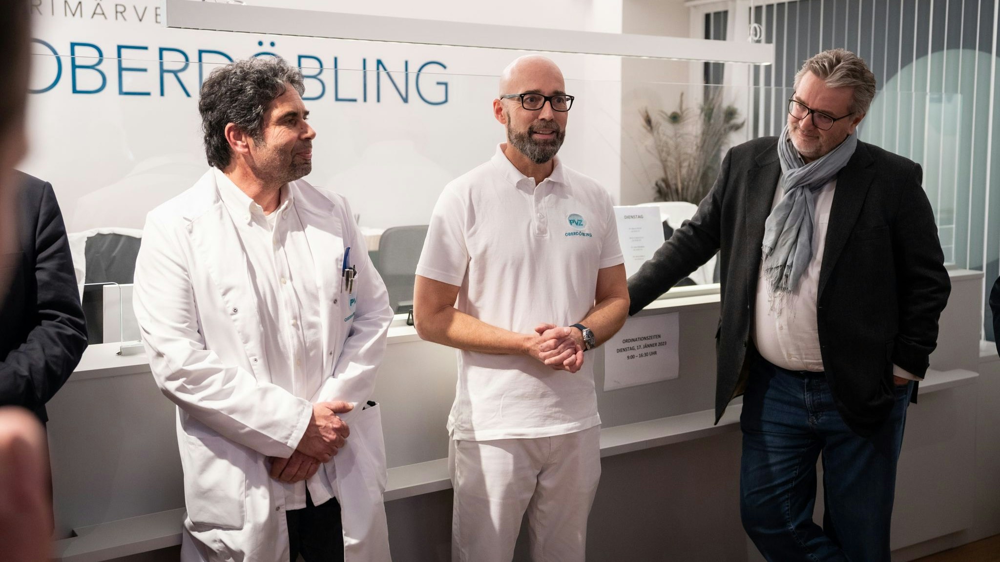 Die beiden Ärzte Mario Földy und Ernest Zulus mit Stadtrat Peter Hacker (SPÖ) bei der Eröffnung der neuen Primärversorgungseinheit in Oberdöbling.