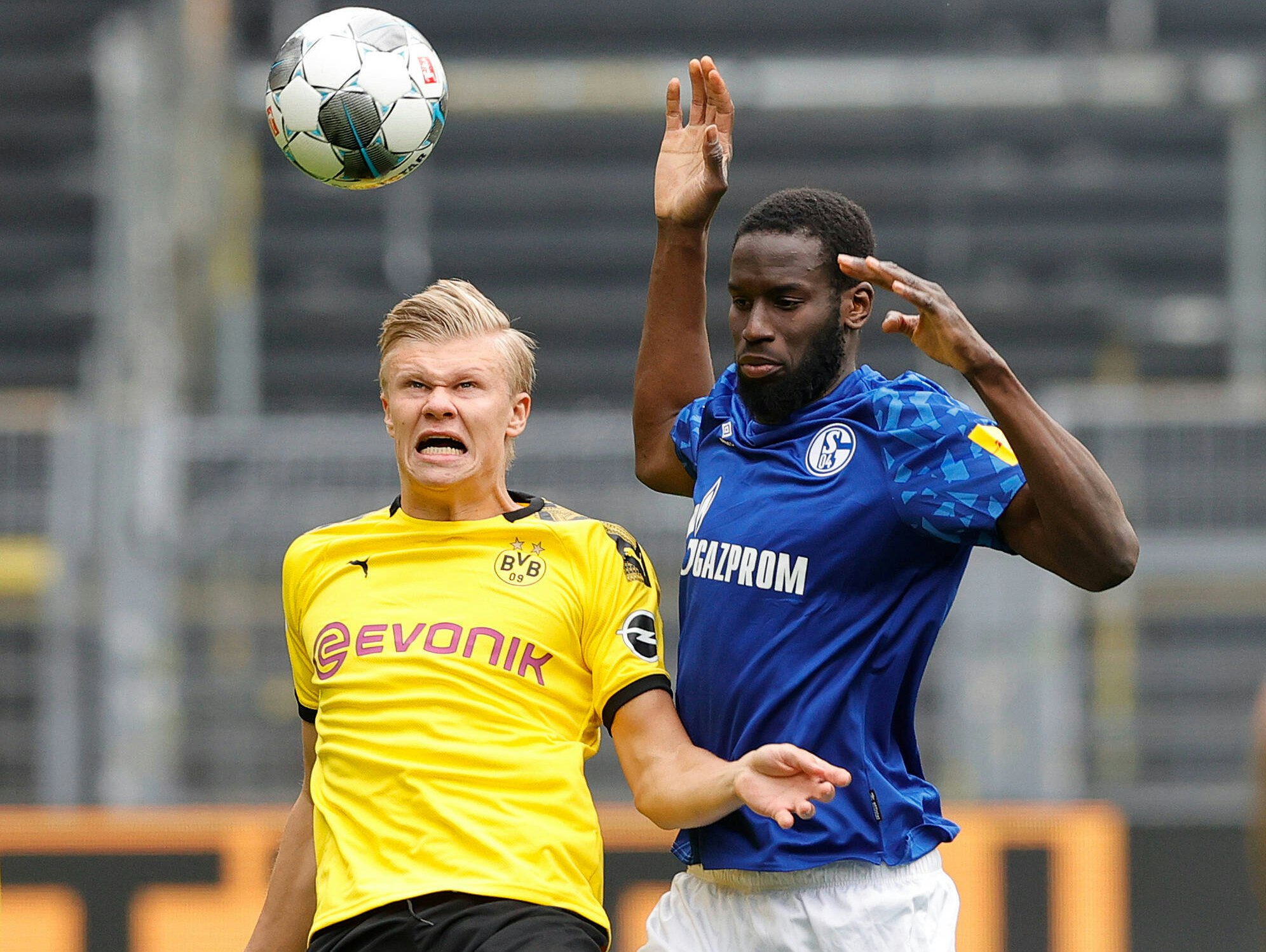 Haaland (l.) kickt vor einer Geisterkulisse.