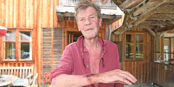 Prinz Ernst August vor seinem Jagdschloss im Salzkammergut: Im Juli bereits kam es zu einem Polizeieinsatz. Hier zeigt der Welfenprinz seine Verletzung.