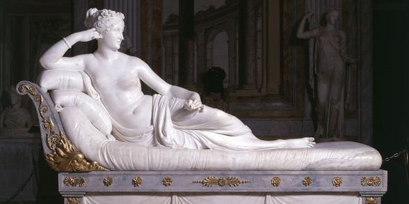 Pauline Borghese (Paolina Bonaparte) als Siegreiche Venus, ca. 1805–1808, Marmorskulptur von Antonio Canova