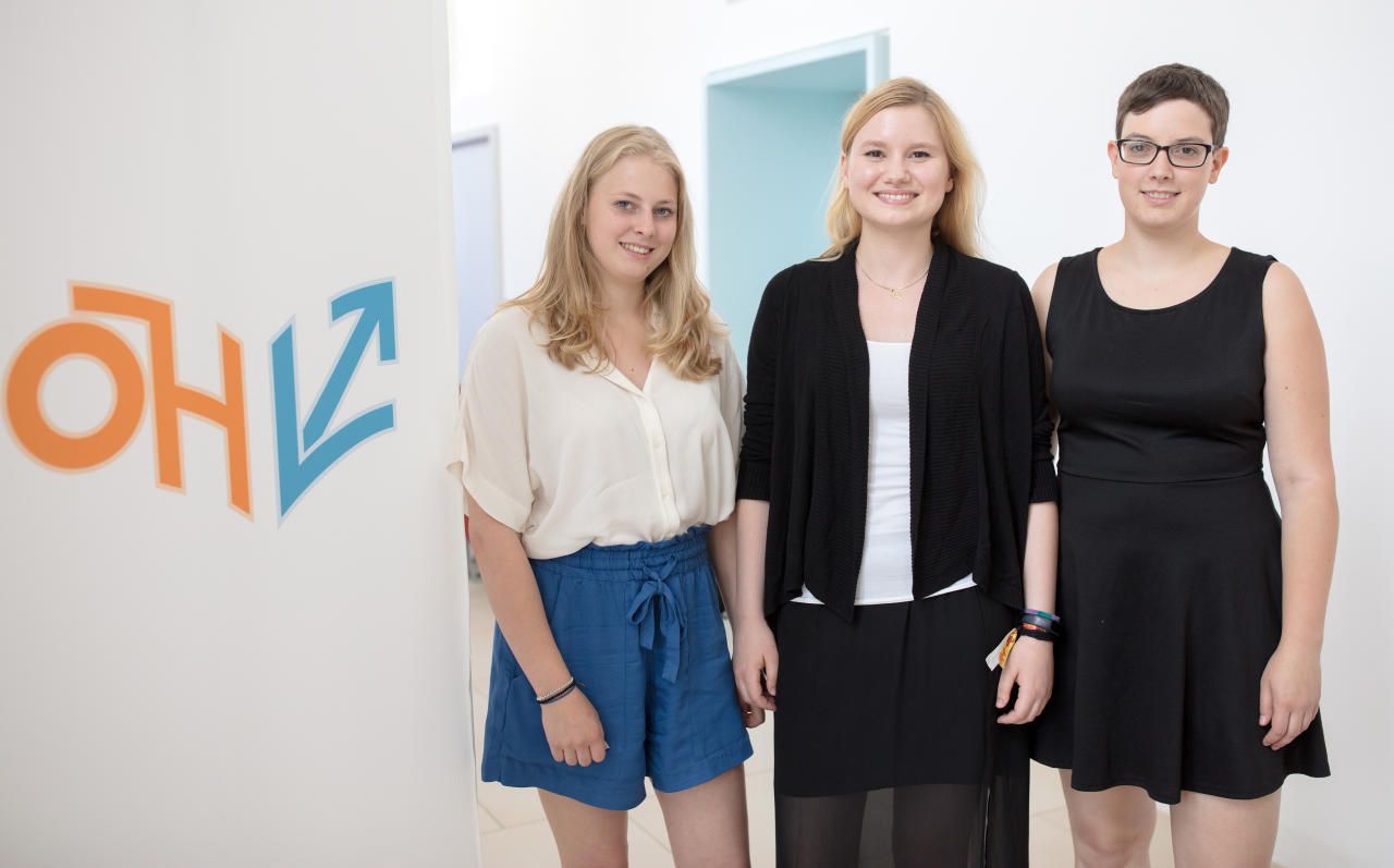 ÖH-Vorsitzende Johanna Zechmeister (FLÖ), 1. Stellvertreterin Marita Gasteiger (GRAS, R) und 2. Stellvertreterin Hannah Lutz (VSStÖ, L) am Freitag, 23. Juni 2017, im Rahmen einer PK mit dem frisch gewählten ÖH-Vorsitzteam in Wien.