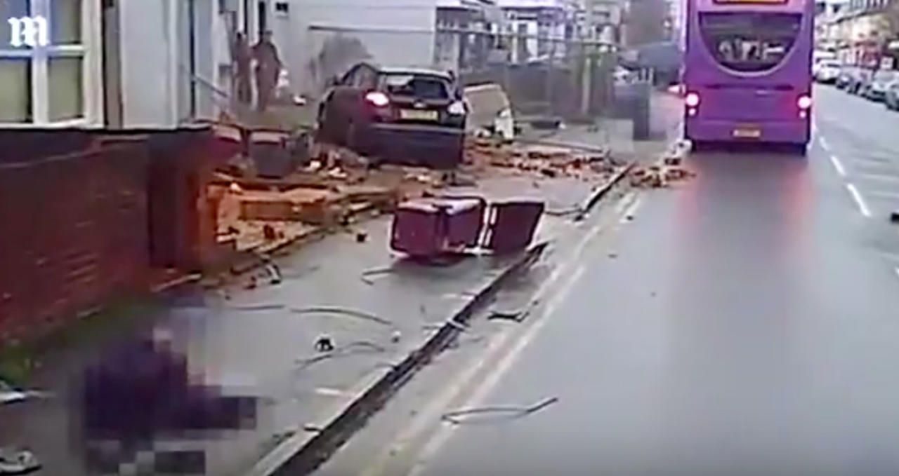 Bild des Grauens: Die Pensionistin ist über den Gehweg und durch eine Mauer gerast. Für eine Fußgeherin (44) kommt jede Hilfe zu spät.