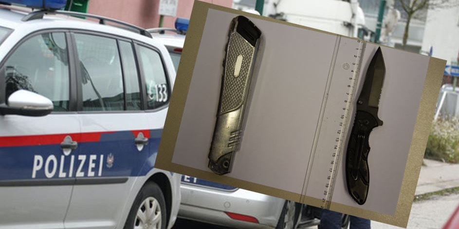 Ein Pärchen soll mit diesen beiden Messern (Insert) zwei Jugendliche bedroht haben.