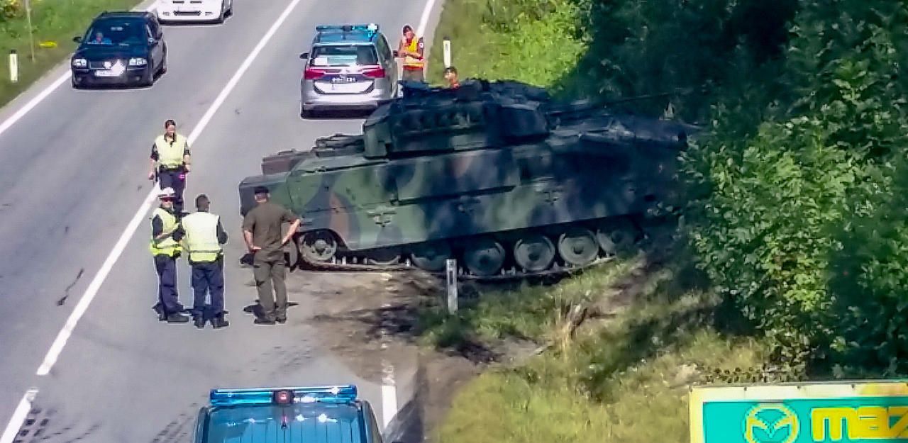 Ein Bundesheer-Panzer fuhr in einen Straßengraben.