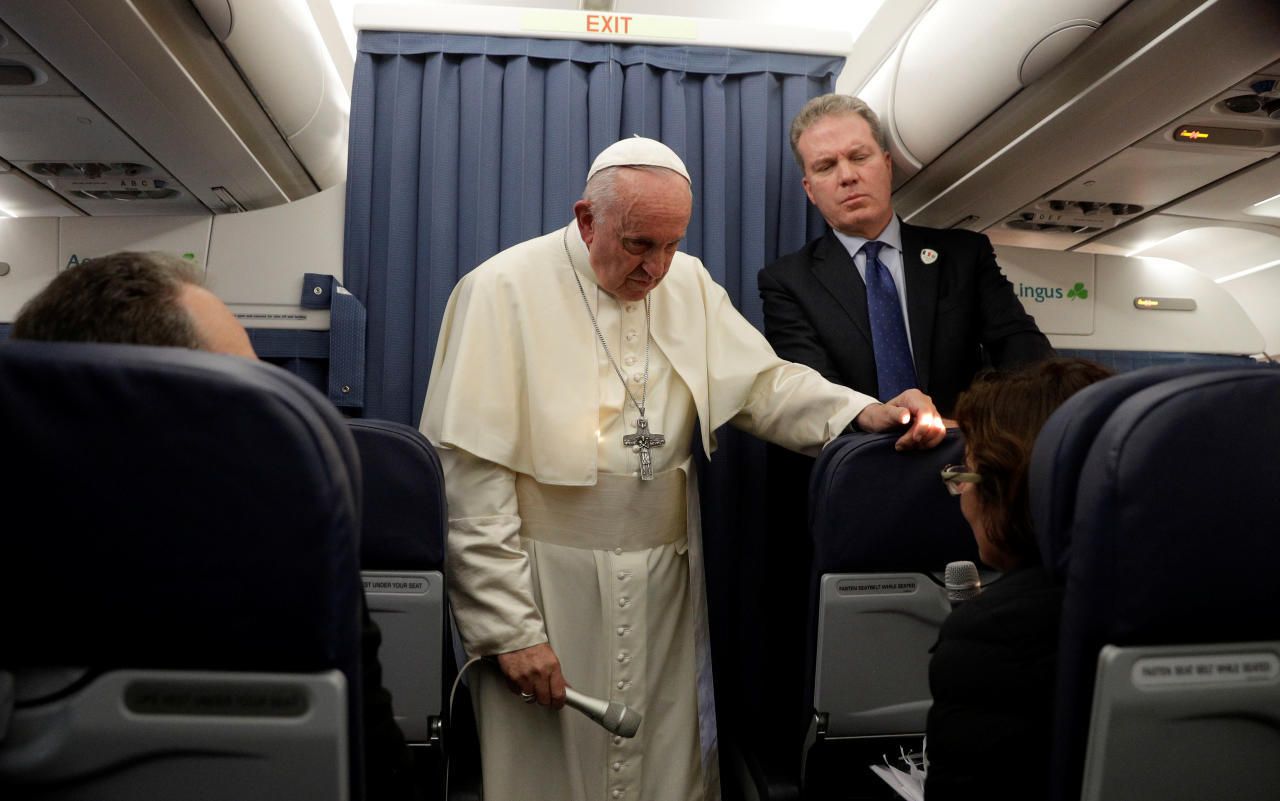 Papst Franziskus bei seiner Pressekonferenz am Rückflug nach Rom.