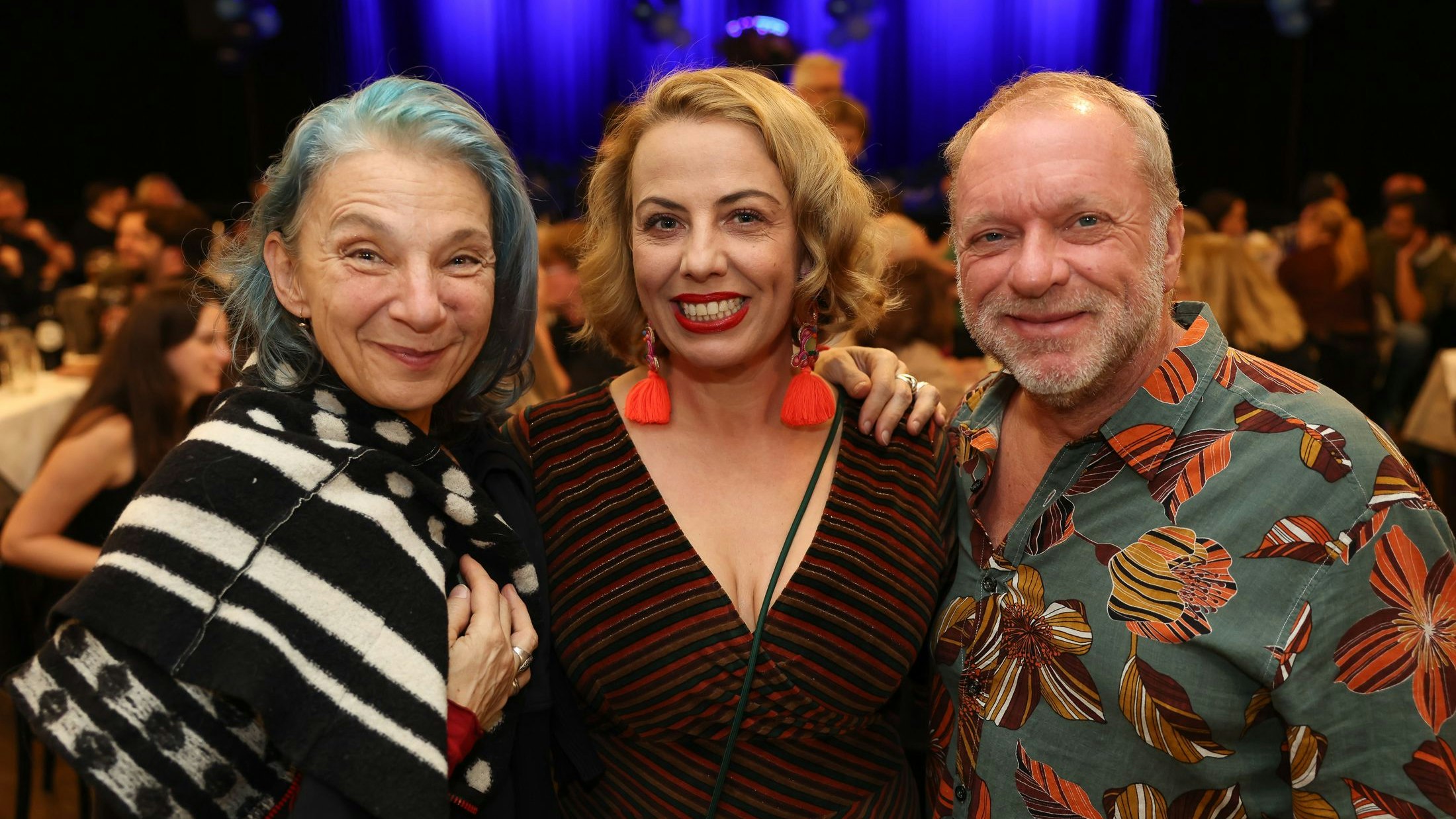 Eva Billisich mit Kulisse Chefin Alexa Oetzlinger und Reinhard Nowak bei der Feier zu 45 Jahren Kulisse.