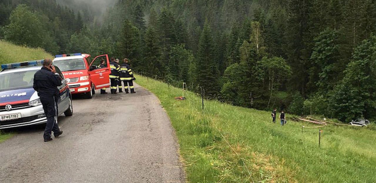 Der Geländewagen (rechts im Bild) stürzte über die Böschung