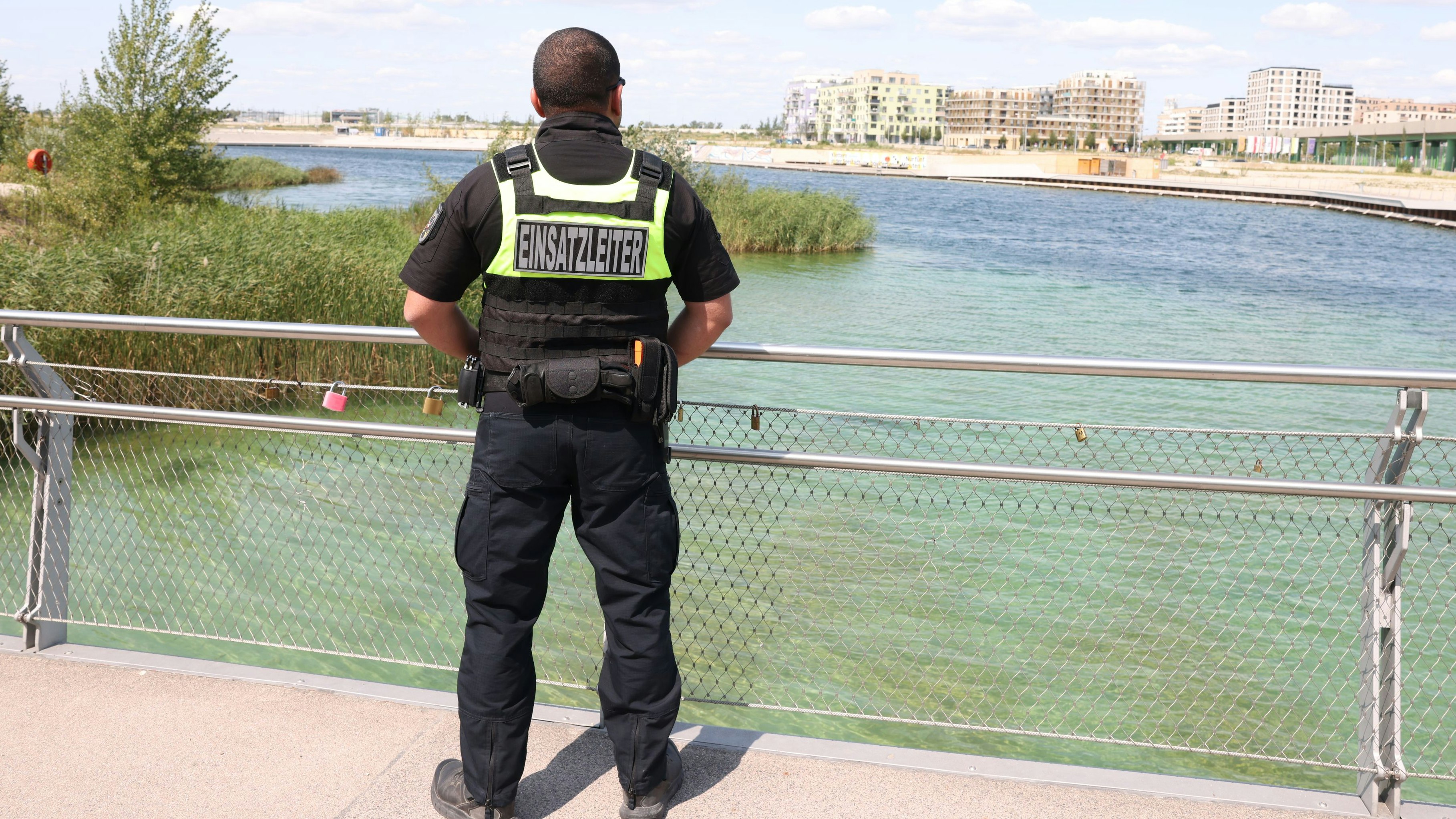 Securitys sind in der Wiener Seestadt unterwegs.