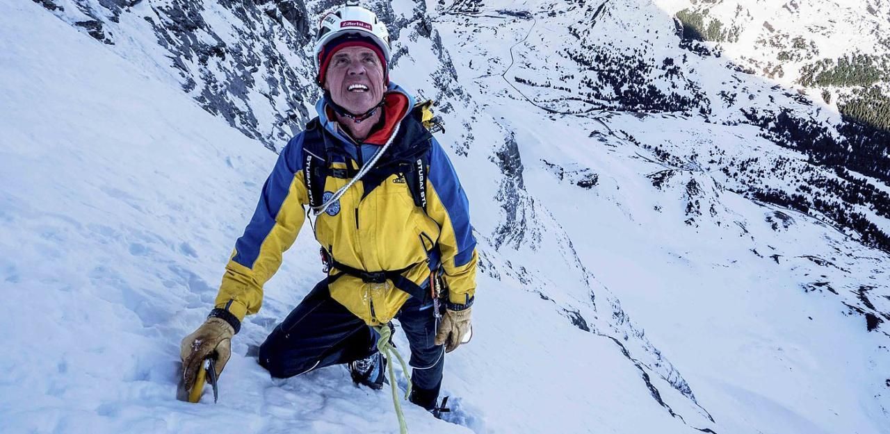 Peter Habeler auf dem Weg zum Gipfel des Eigers waehrend ServusTV's "Bergwelten - Peter Habeler", am Eiger, Amtsbezirk Interlaken, Bern, Schweiz..
