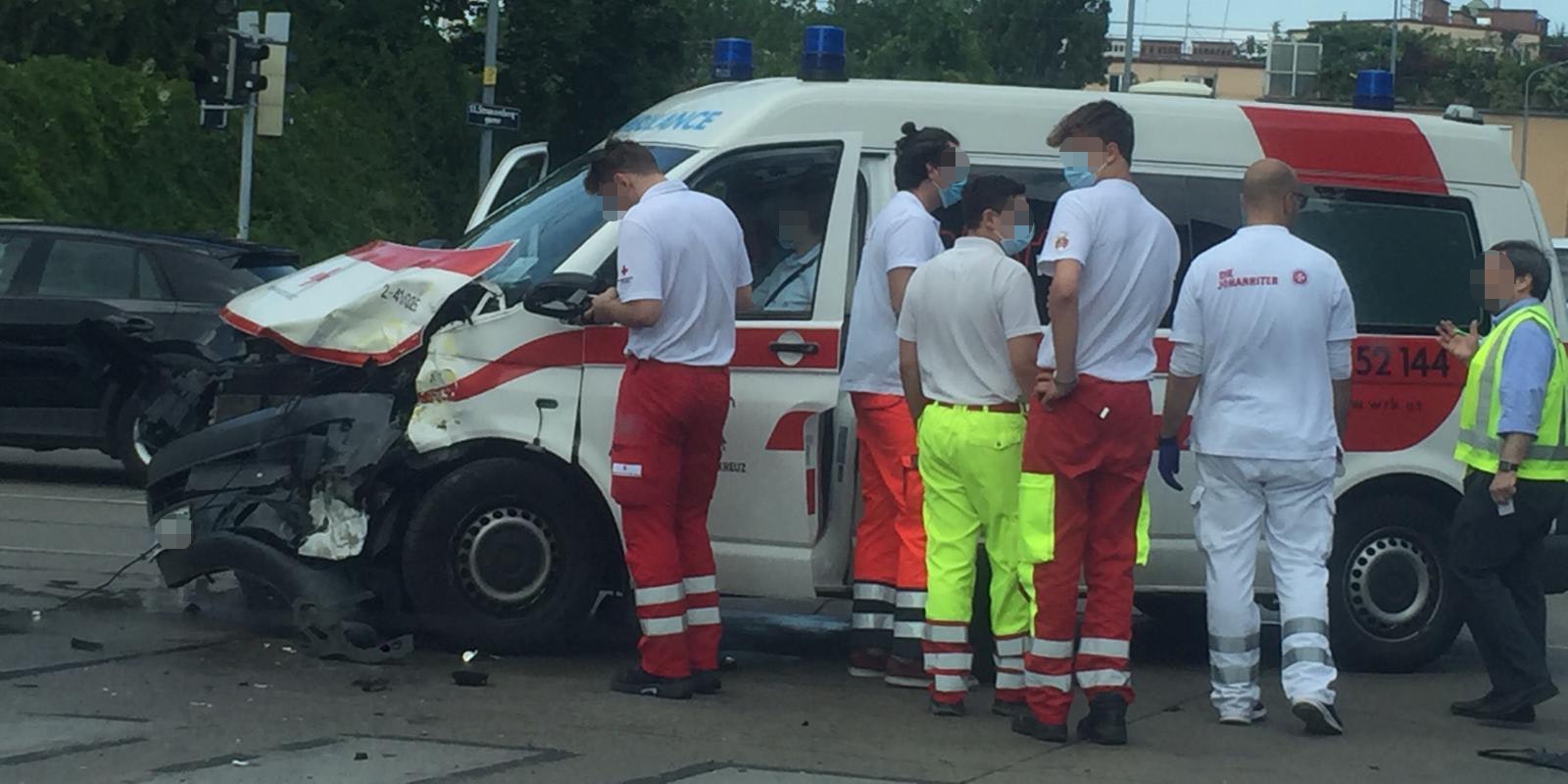 Auf der Hetzendorfer Straße in Wien Meidling krachte ein Pkw in ein Rettungsauto des Roten Kreuzes. Dabei wurde ein Sanitäter schwer, zwei weitere leicht verletzt.