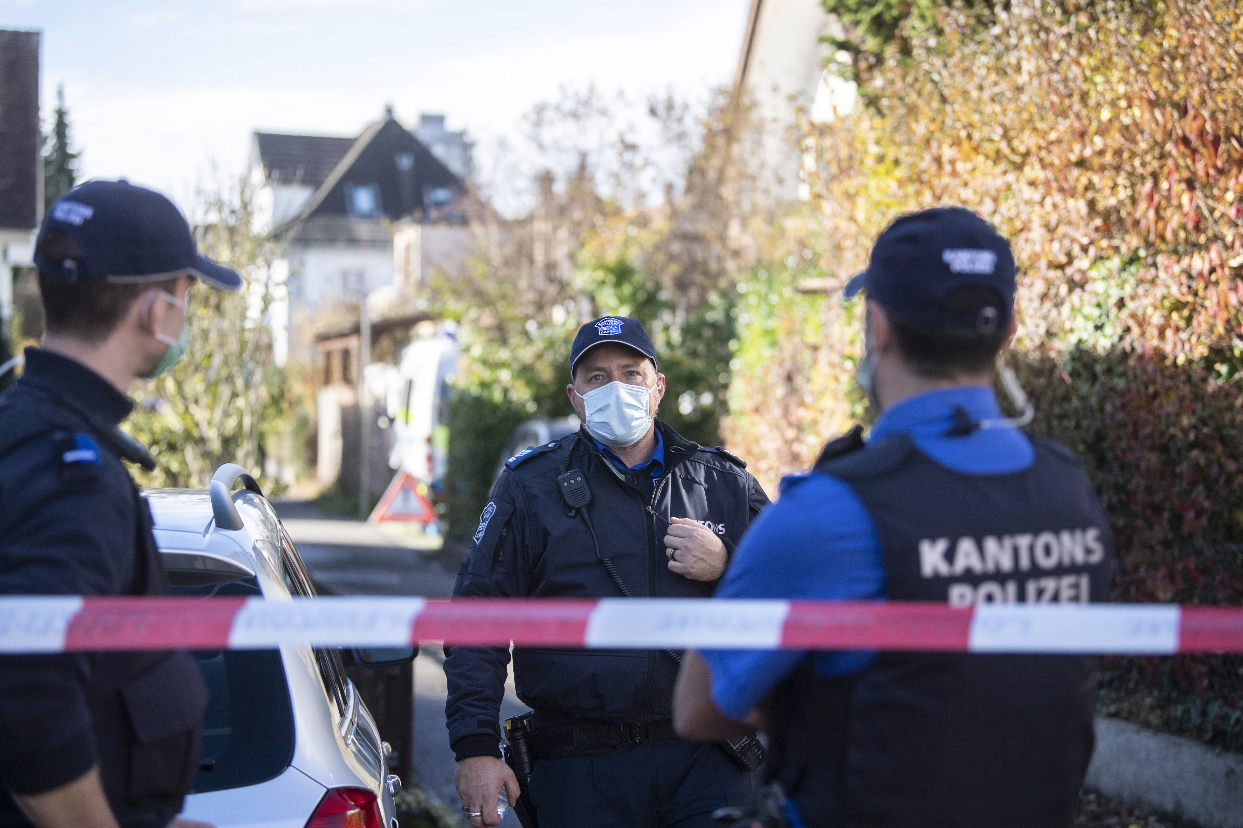 Polizisten sichern den Bereich um den Tatort am 2. Oktober 2020 in Buchs (CH).