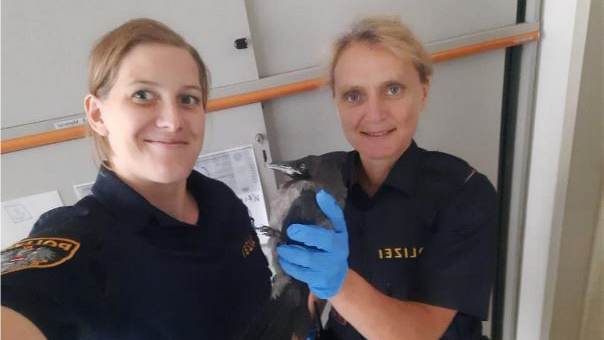 Die Polizei rettete die Krähe verletzt vom Währinger Gürtel...