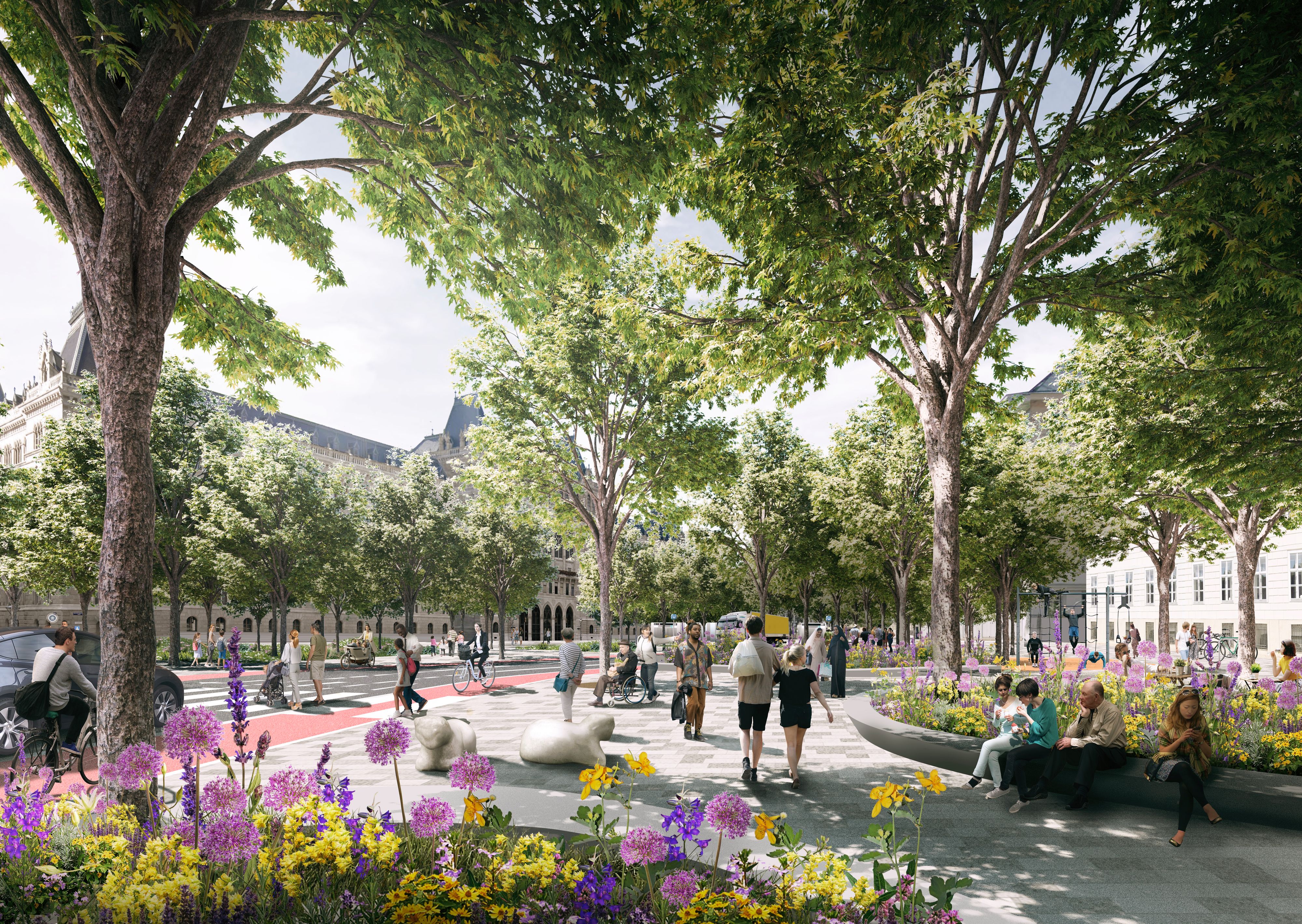 Die Grünen wollen mehr Bäume, Abkühlung und weniger Autos für die Zweierlinie. Diese Visualisierung soll den Plan verdeutlichen.