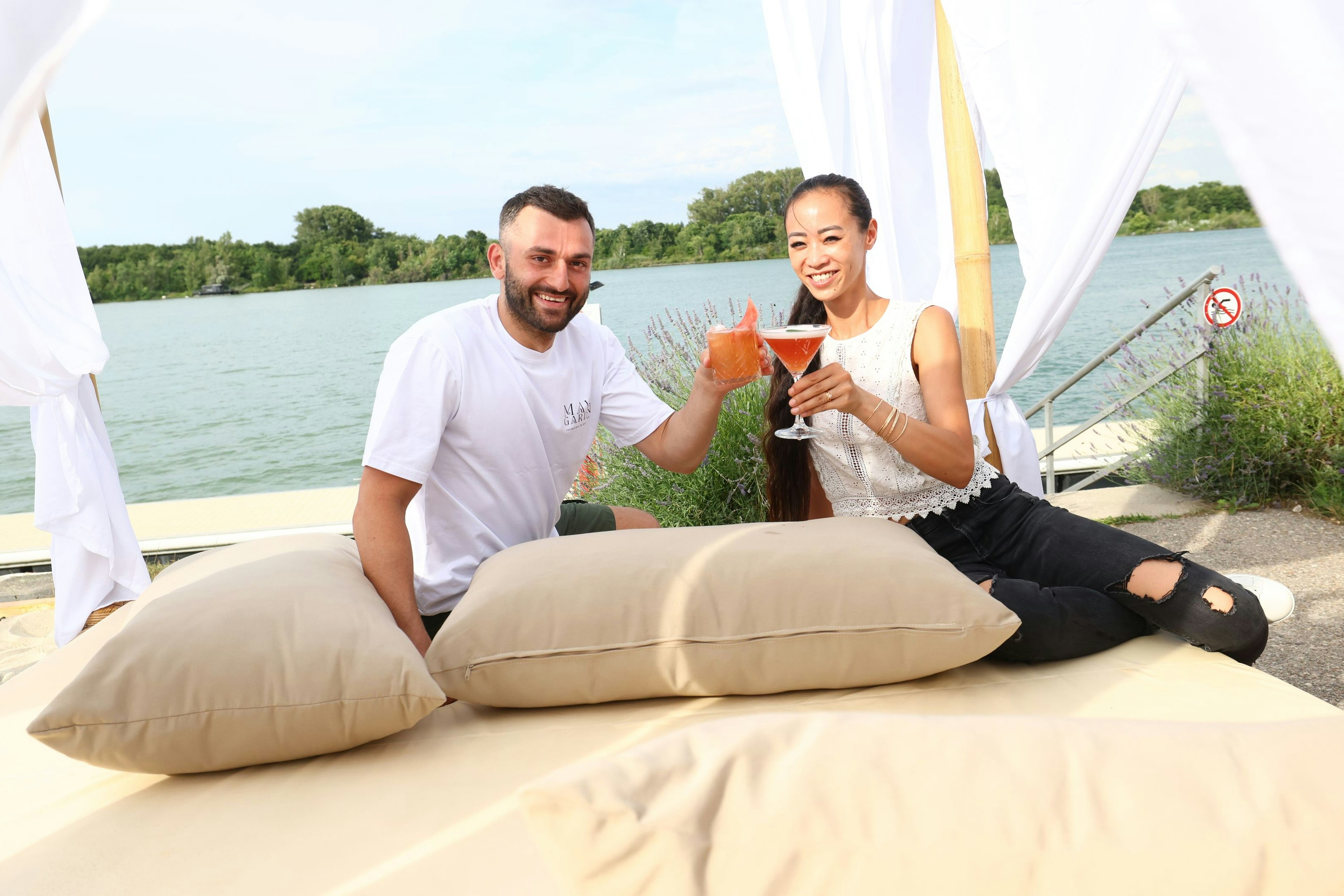 Barchef Dionis Camaj und Managerin Christina Tran stoßen auf die Eröffnung des "Maya Gardens" an.